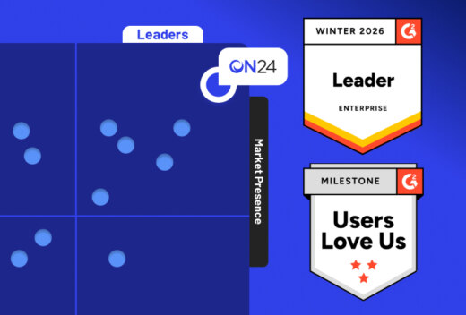 ON24 is the leader of G2’s Winter 2026 Enterprise Grid® for Webinars, earning praise for engagement, tools and satisfaction. See why thousands trust ON24 to deliver results and elevate every event—download the G2 Grid® Report now.
