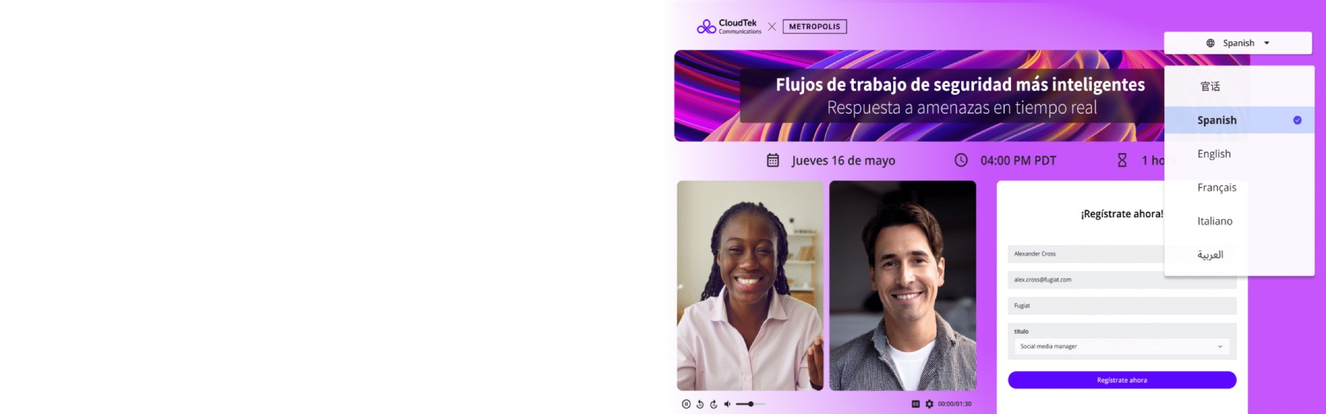 - Save Time by translating content — either live or in real-time or on-demand — directly through the ON24 platform. No additional software or app required.