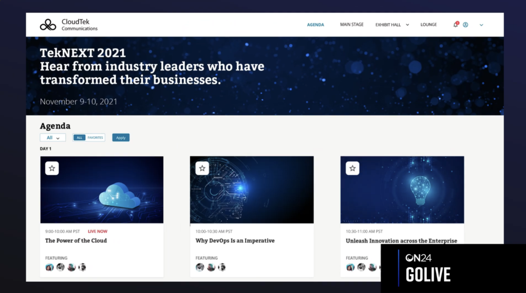 Deliver virtual events that connect presenters and audiences through the ON24 virtual event platform, optimized for networking and audience participation.